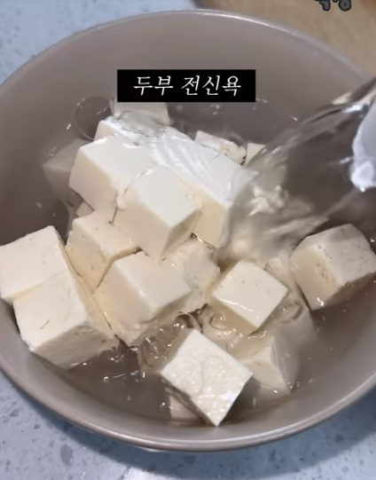 사실 전.. 두부 휘~ 물에 헹궈(거의 뿌리는 수준) 그냥 먹는데...ㅎㅎㅎ